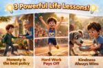 A heartwarming collection of 3 bedtime stories for kids, teaching valuable life lessons: Honesty, Hard Work, and Kindness. Perfect for relaxing nighttime reading and moral learning.