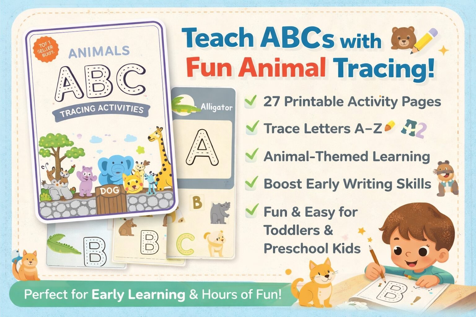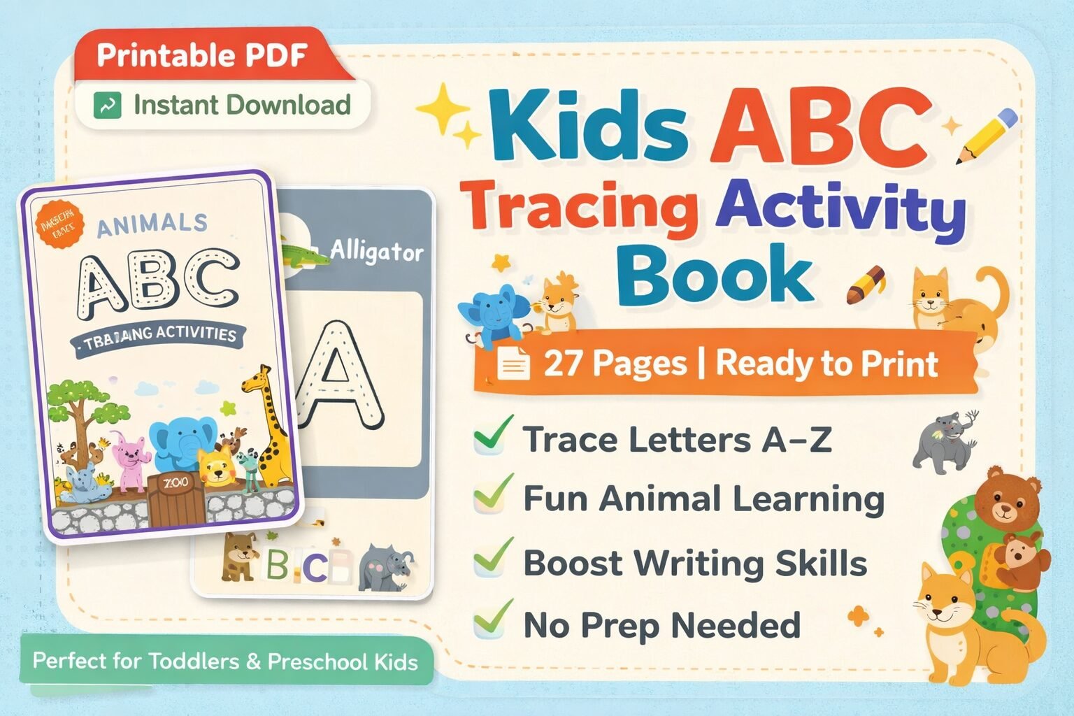 Make learning fun and engaging for your little ones with this adorable animal-themed ABC tracing activity book 🐾