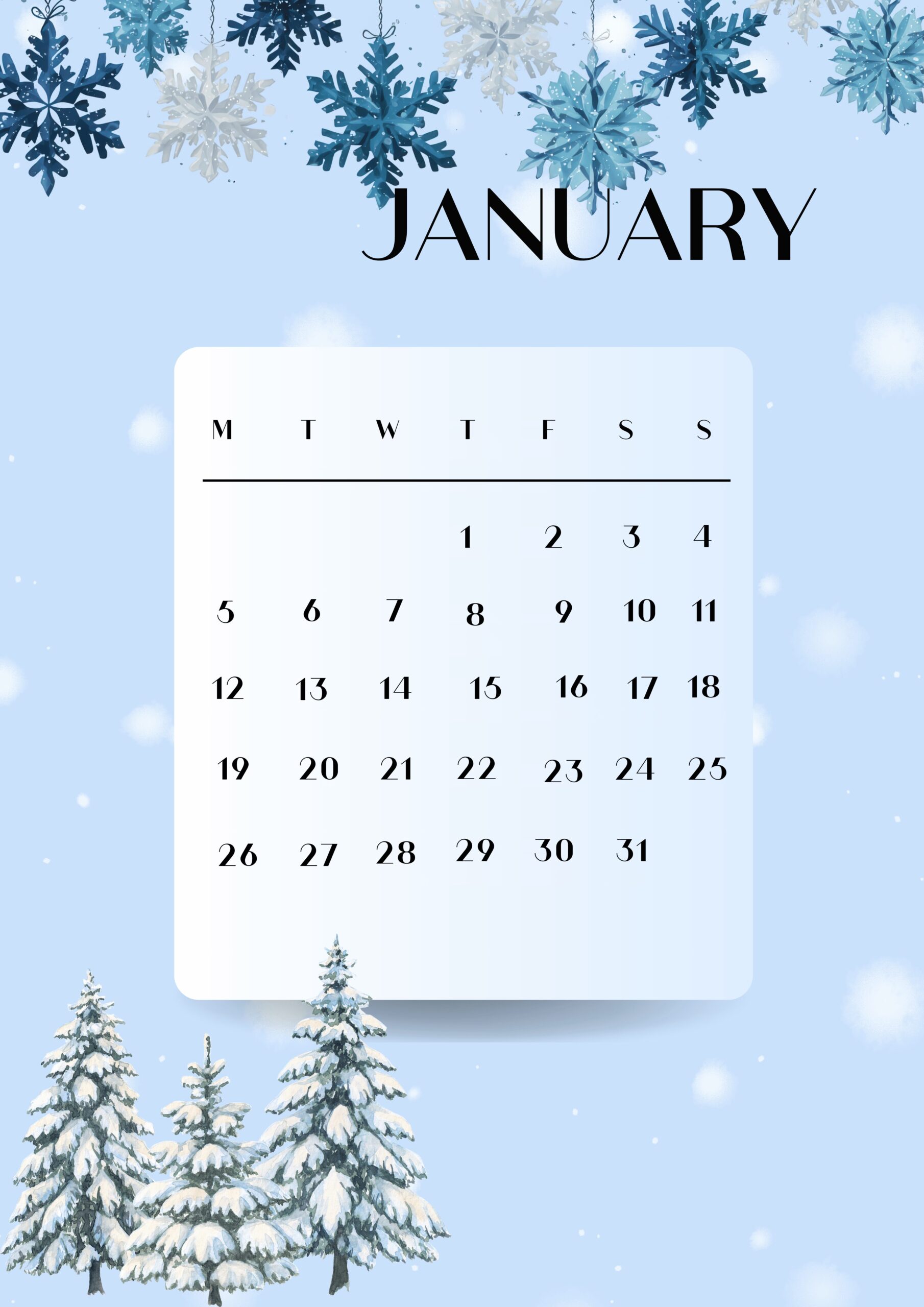 • High-quality printable wall calendar